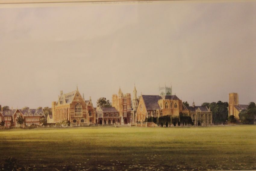 2 large framed and glazed prints of Clifton College, Bristol. Largest measuring 53cms x 77cms