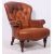 A good tan leather Chesterfield style armchair being raised on turned legs with barrel arms and deep back rest. Measures: 102cms x 76cms x 70cms.