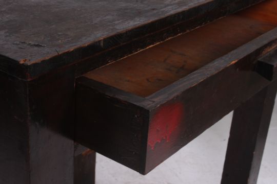 An original 1960's Industrial large wooden workshop stand table. Raised on squared legs united by stretcher having single drawer above. Ex Douglas motorcycle factory, Bristol. Measures: 84cms x 78cms x 62cms.