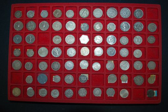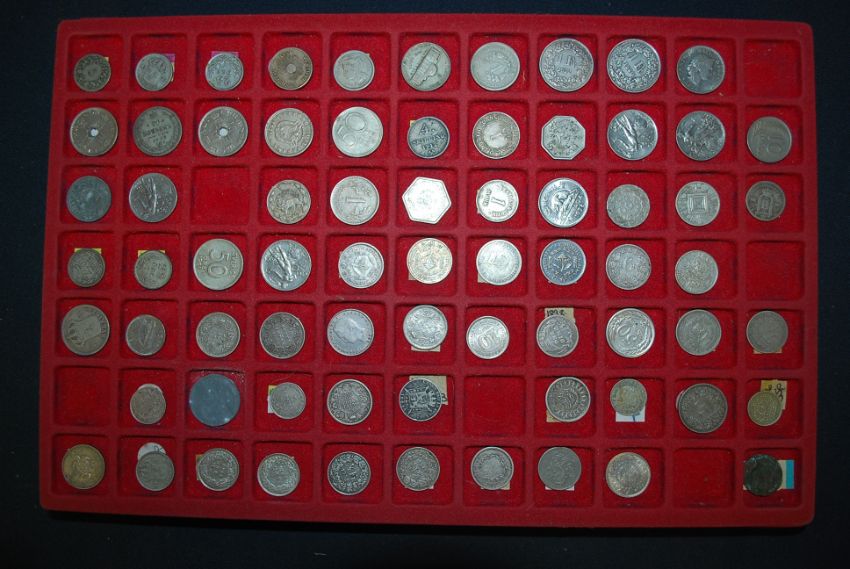 A large collection of 20th century and old coins all set within trays to mostly consist of continental, asia, arabic etc,