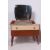 A retro 1950's chest of drawers together with a matching dressing table, both being raised on tapered supports having detailed fronts / facias. Measures: 126cms x 93cms x 44cms.