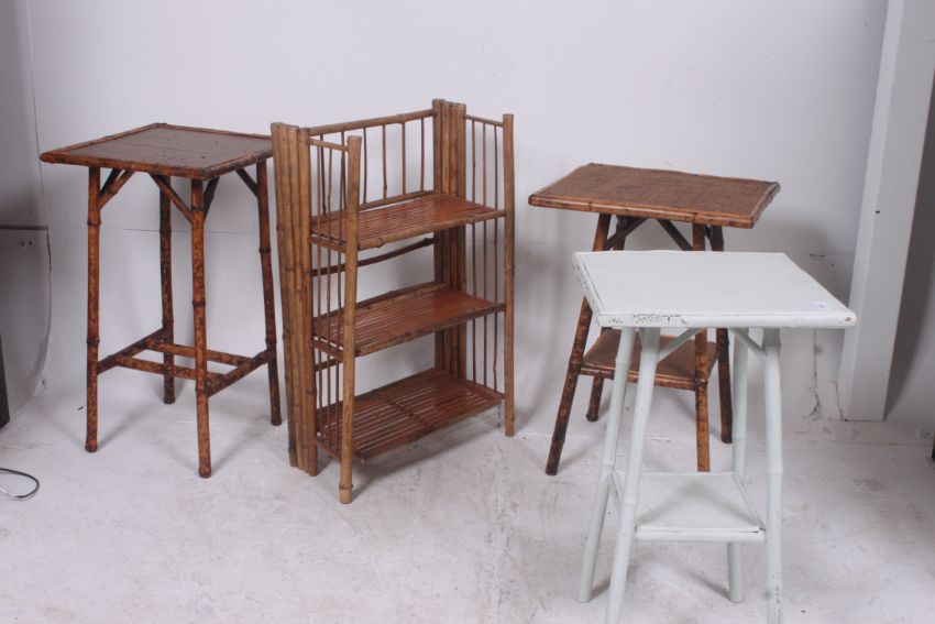 A collection of bamboo furniture, circa 1930's to include occasional table ( see illustration ). Measures: large table- 66cms x 47cms x 47cms.