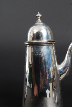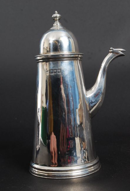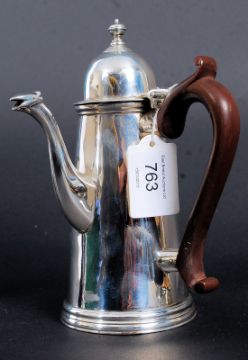 A silver hallmarked Chocolate pot bearing marks for London having a fruit wood handle with date letter for 1933