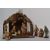 A 20th century nativity set, comprising of resin figures and a wooden stable.