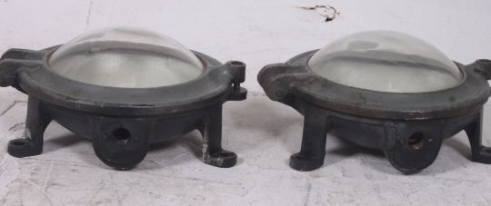 A pair of original vintage industrial bulkhead / work lights. Removed from the Douglas Motorcycle Factory in Bristol upon closure.