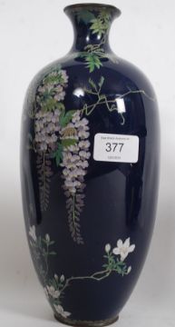 A Chinese enamel polychrome on copper vase decorated with floral sprays having bulbous body with waisted neck. Measures 27cms high