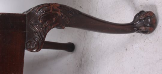A pair of early 20th century mahogany Chippendale dining chairs. Raised on cabriole legs with ball and claw feet with drop in seats having pierced back rests. Measures: 102cms x 62cms x 49cms.
