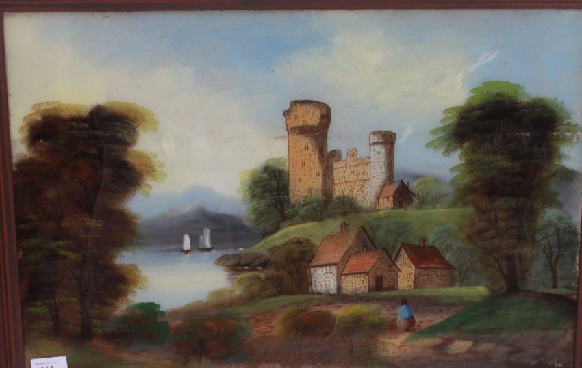 A pair of late 19th / early 20th century paintings on glass of tradition scenes. H40cm x W60cm