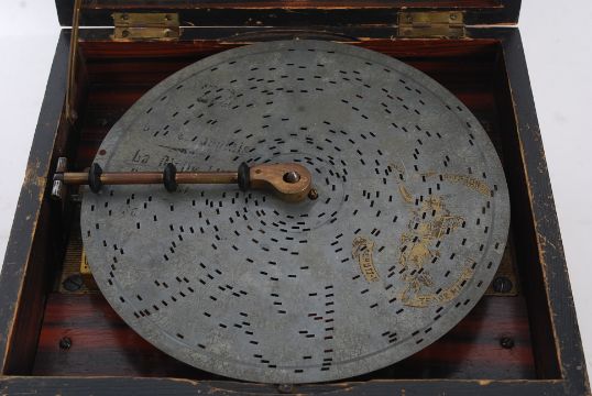 An original 19th century Victorian Polyphon music box being German, Leipzig made together with twenty steel discs to include the Blue Danube. The walnut box with lined interior and the top with original notation.