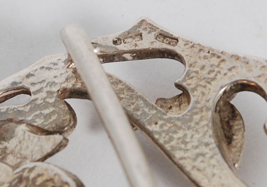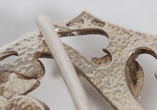 A 20th century hallmarked silver nurses buckles pierced in relief with dolphins, birds and fish bearing Birmingham hallmarks for 1993. Weight 87.3g
