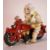 A cast iron figure of the Michelin Man Bibendum upon a motorcycle, hand painted.