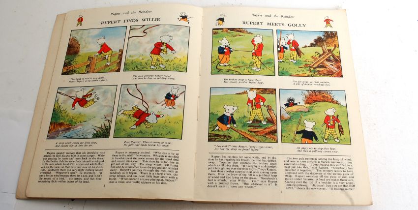 RUPERT THE BEAR; An original ' The New Rupert Book' annual - War Economy Standard, issued by the Daily Express. Rupert Bear is a children's comic strip character created by the English artist Mary Tourtel and first appearing in the Daily Express newspaper on 8 November 1920. Rupert's initial purpose was to win sales from the rival Daily Mail and Daily Mirror. In 1935, the mantle of Rupert artist and storyteller was taken over by Alfred Bestall, who was previously an illustrator for Punch and other glossy magazines. Bestall proved to be successful in the field of children's literature and worked on Rupert stories and artwork into his 90s. More recently, various other artists and writers have continued the series.