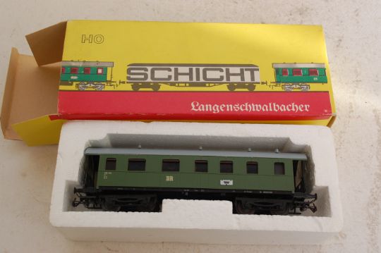 SCHICHT: A collection of 8x original Schicht HO Scale boxed railway trainset carriages: 426-33, 426-37, and 6x 426-35. NOTE: This lot comes from an extensive collection of vintage railway trainset items ranging from Hornby, Wrenn, Roco and Airfix. All items are generally presented in good original condition, many being unused or with light use. Stored carefully away for many years by the gentleman collector, and all items (unless stated) come in original boxes, with paperwork / instructions where necessary. Buyers are reminded to satisfy themselves on condition of specific lots, but in general item from this collection are in good to excellent condition.