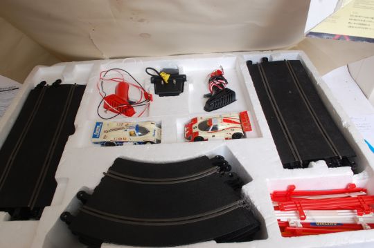 SCALEXTRIC; An original Scalextric Le Mans 24hr racing set racing set, complete with a boxed Accessory Extension pack.