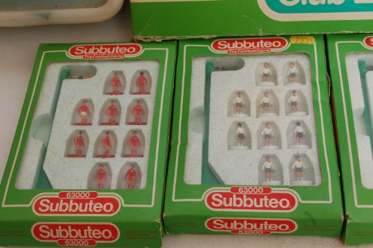 SUBBUTEO; A collection of vintage 1980's Subbuteo items to include 4x boxed sets of teams, a boxed edition and several accessories