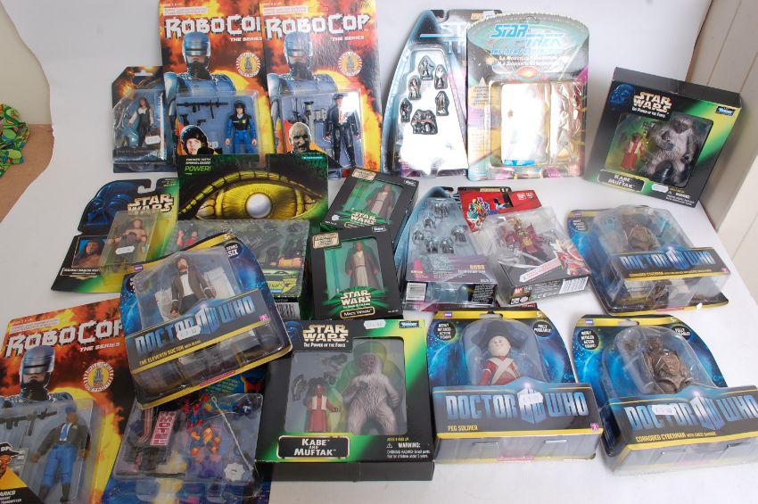 ACTION FIGURES; A collection of assorted carded action figures to include Kenner Star Wars, Toy Island Robocop, Playmates Star Trek etc.