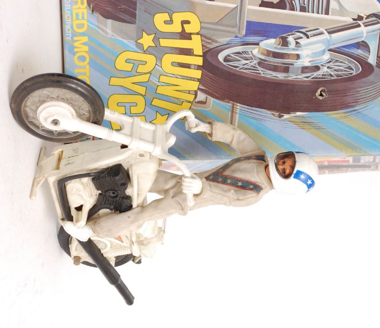 An original vintage retro Evel Knievel; Stunt Cycle toy by Ideal. In original box, with 2x figures.