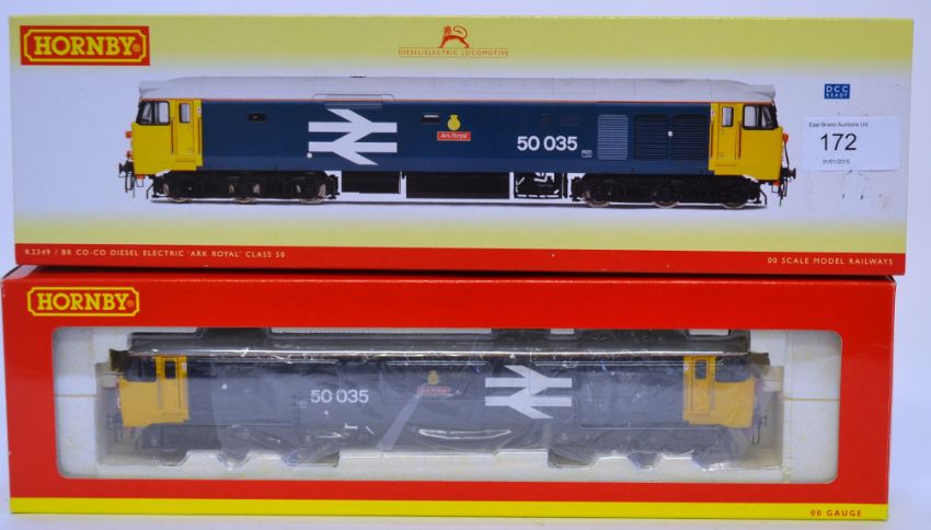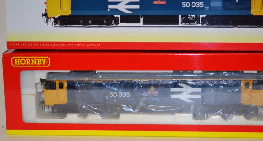 HORNBY: An original Hornby 00 Gauge R2349 Class 50 Ark Royal locomotive. In original box with paperwork. Notes: this lot comes from an extensive private collection of model railways trainset locomotives and accessories (Hornby, Bachmann, Mainline etc). The newer pieces are mostly unused and will come with all paperwork, interior packaging and accessories. The gentleman vendor had one set to use, and one set to keep. Some older models are 'used' but in original packaging / boxes. Buyers are reminded to satisfy themselves on the condition of each individual lot, but the majority of this collection is 'as new.'