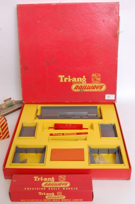 RAILWAYS: An original Triang Railways R161 Operating Hopper Car Set in original box, along with a quantity of trainset Triang accessories (some boxes empty).