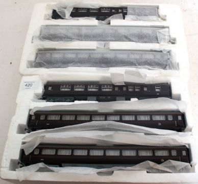HORNBY; Two sets of Hornby 00 gauge railway trainset carriages R4400 Queens Carriages - both sets still within original polystyrene packaging, appearing new / unused. Notes: this lot comes from an extensive private collection of model railways trainset locomotives and accessories (Hornby, Bachmann, Mainline etc). The newer pieces are mostly unused and will come with all paperwork, interior packaging and accessories. The gentleman vendor had one set to use, and one set to keep. Some older models are 'used' but in original packaging / boxes. Buyers are reminded to satisfy themselves on the condition of each individual lot, but the majority of this collection is 'as new.'