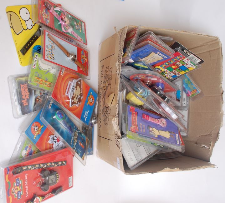 A large quantity of assorted watches and keychain games etc, to include The Simpsons, Disney, Looney Tunes, Casper, Ghostbusters etc.