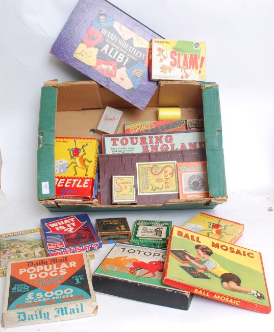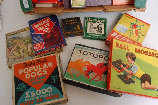 A good collection of assorted vintage (early 20th century and later) games and toys to include; Totopoly, Popular Dogs, Ball Mosaic, Snakes & Ladders, Touring England and others.