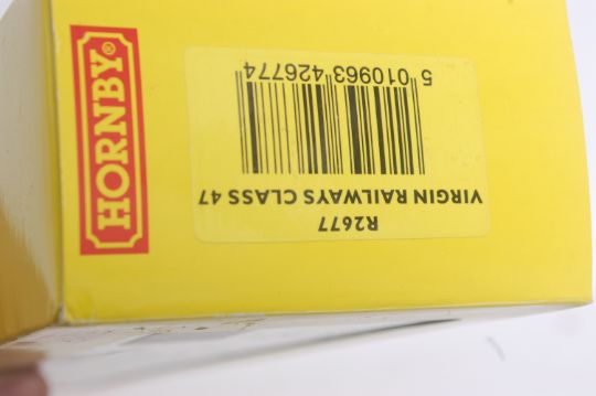HORNBY; An original Hornby 00 gauge railway trainset locomotive; R2677 Virgin, in original box. Notes: this lot comes from an extensive private collection of model railways trainset locomotives and accessories (Hornby, Bachmann, Mainline etc). The newer pieces are mostly unused and will come with all paperwork, interior packaging and accessories. The gentleman vendor had one set to use, and one set to keep. Some older models are 'used' but in original packaging / boxes. Buyers are reminded to satisfy themselves on the condition of each individual lot, but the majority of this collection is 'as new.'