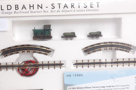 TRAINS; An N Gauge Busch Feldbahn Startset HO12005 Military Narrow Gauge railway train set, appearing complete, in original box.