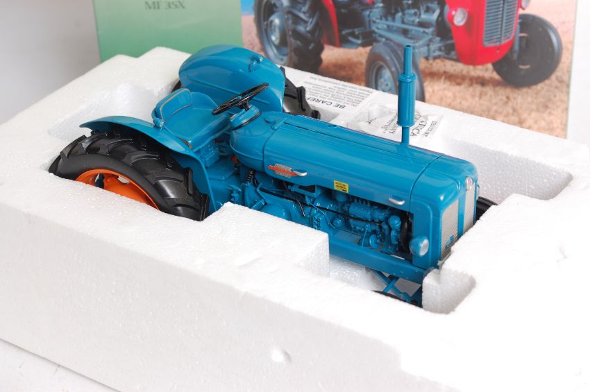 UNIVERSAL HOBBIES; Two original Universal Hobbies diecast model 1:16 scale tractors - a Fordson Power Major and a Massey Ferguson MF35X. both in original boxes.