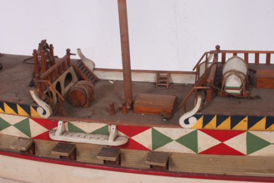 A large 20th century model display ship of large proportions and well detailed - including miniature cannons to the sides and detailing to the deck. See illustrations