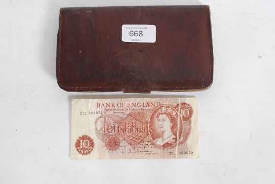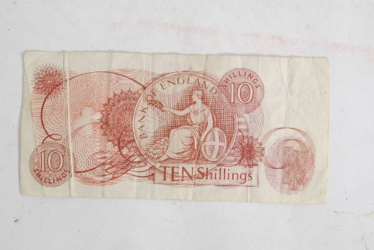 A rare Ten Shilling Bank Of England bank note with PRINTING ERROR crease to right hand side serial number 29L353872