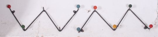 A pair of retro wall hanging Atomic coat hooks. H23cm x W51cm x D7cm