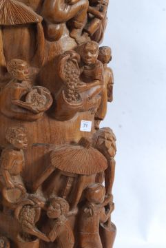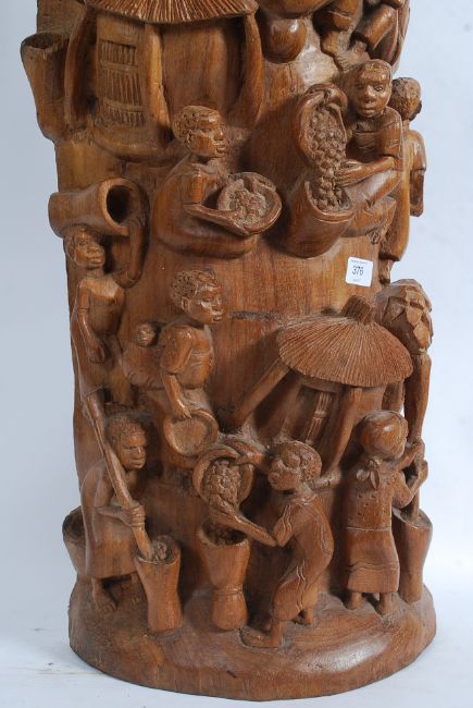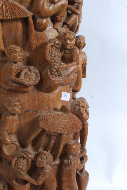A large Africa tribal wooden carving in relief of decorative scenes of people and animals etc