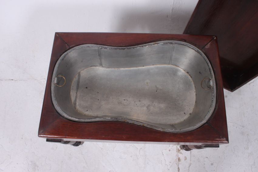 A 19th century Victorian bidet stool having cover over metal kidney tray all raised on turned and tapered supports. 43x53x35cm