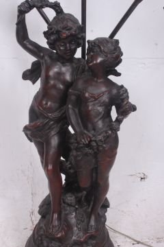 AFTER MOREAU; A 20th century plaster bronzed effect decorative table lamp depicting children, signed to base.