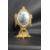 A 19th century German gilt metal biedermeier ormulu dressing table vanity mirror. The gilded metal base with conch shell recess having scroll work arms and oval mirror to centre. The rear of the mirror stamped partially illegible F. Kraus, Mainz 1575. Mirror has crack line,