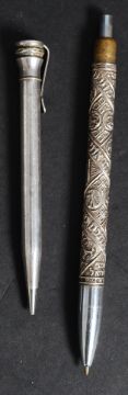 A sterling silver propelling pencil together with an Israeli sterling silver pen with decorative design. gw 42.4g