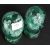 WITHDRAWN A pair of Victorian green glass dumps with floral decoration, each set with three short and three long flowers in a vase, 13.5cm high.