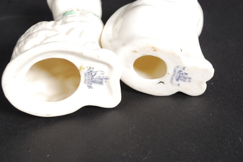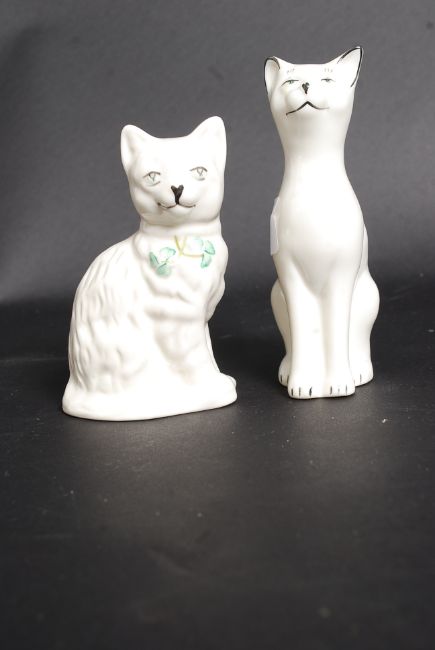2 Irish 20th century Black stamped Belleek cats/ figurines, both marked to the base.