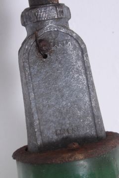 A 1930's green enamel painted Industrial factory pendant lampshade shade complete with attachment head. H47cm x W41cm