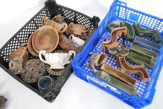 WADE: A large quantity of Wade trinkets, vases, candlesticks etc. See illustration. NOTE: from a large and private collection of Wade figures. Meticulously collected. Most pieces being in perfect condition and only ever carefully displayed. Buyers are however reminded to satisfy themselves as to condition on each lot prior to bidding.