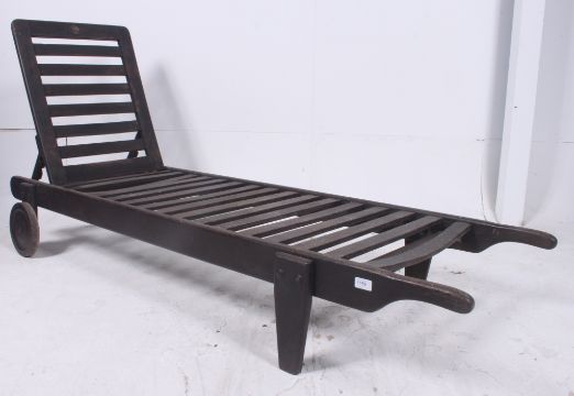 A retro 1970's / 1980's large teak garden lounger - ideal as Industrial style coffee table conversion. H88cm x W62cm D185cm