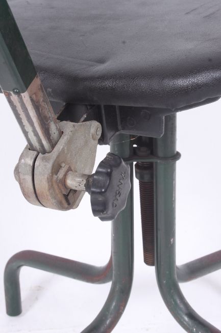 A 1930's / 1940's Industrial tubular metal office swivel desk chair / machinists chair raised on a quadruped base. H85cm x W43cm x D45cm