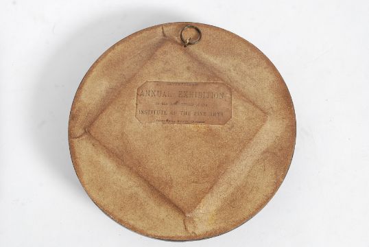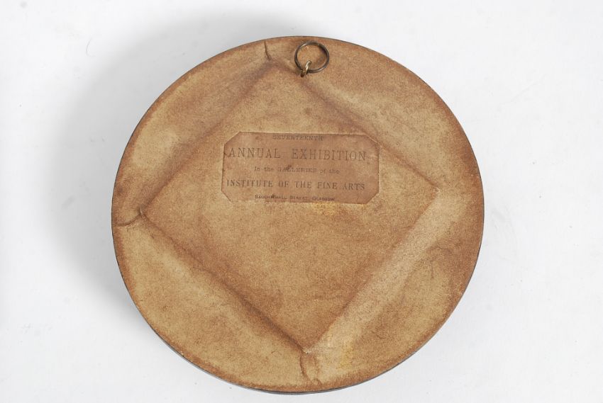 A 19th century miniature painting 3/4 portrait oleograph of a lady and spyglass. Ebonised frame with paper label bearing notation for the seventeenth annual exhibition in the galleries of the institute of the fine arts sauchiehall street Glasgow