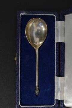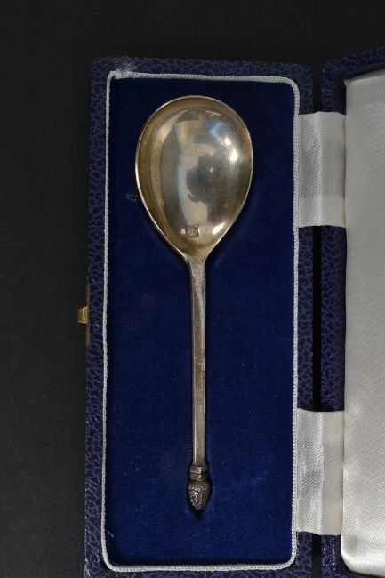 A silver hallmarked Cone Spoon dating to 1976 by CJ Vander, London complete in the presentation box. Weight 30.4g