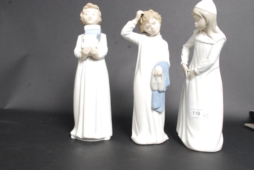 A collection of 3 Nao Spanish glazed figurines all being stamped to the underside
