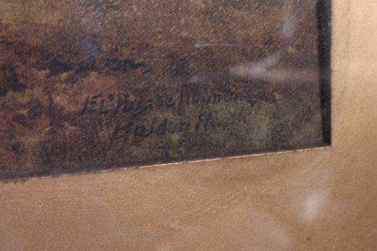 Edwin Charles Pascoe-Holman. 1866 - 1954. Framed and glazed watercolour being signed and titled by the artist with notation to verso. ' Looking across to Dartmoor from Haldon Heath '