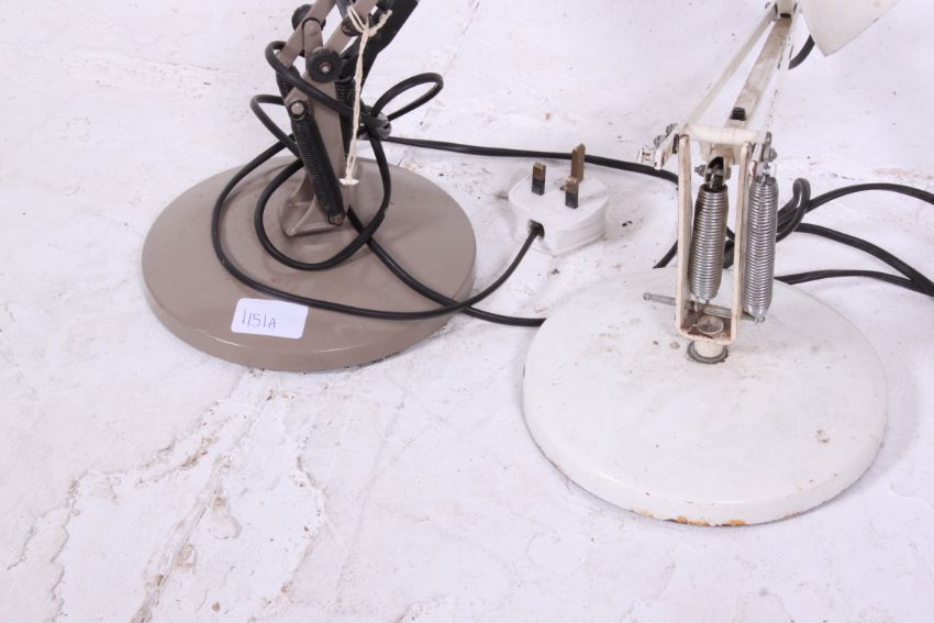 2 20th century Herbert Terry style anglepoise desk top Industrial lamps in white and grey
