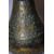 A pair of early 20th century hammered Indian brass vases having decorative animal scene designs with bulbous bodies and trumpet necks