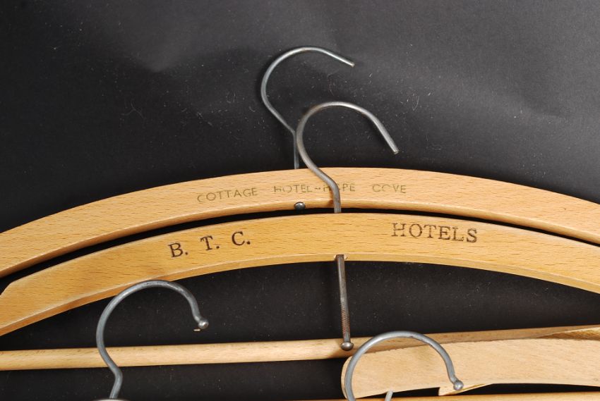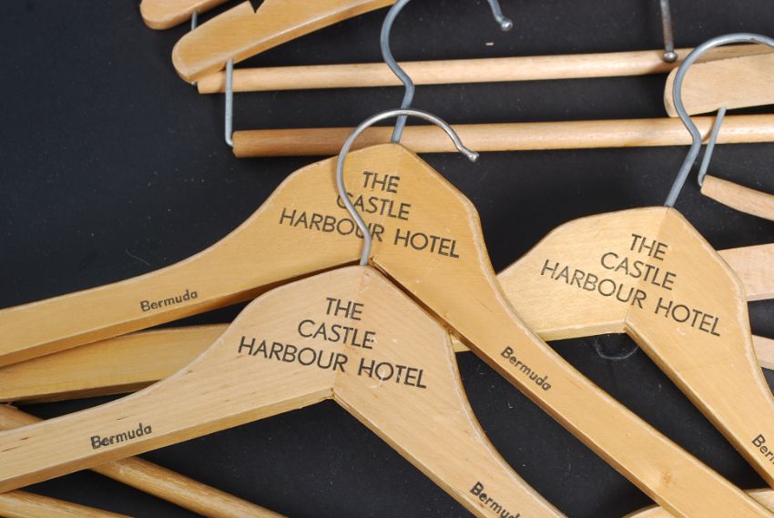 A collection of branded Hotel ware coat hangers from Bermuda and beyond.